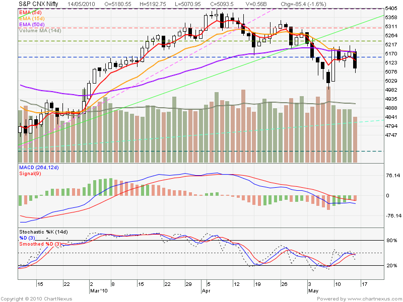 EMA5 is below EMA15 (-). EMA5 resistance at 5135(-). EMA 15 resistance at 5172(-).